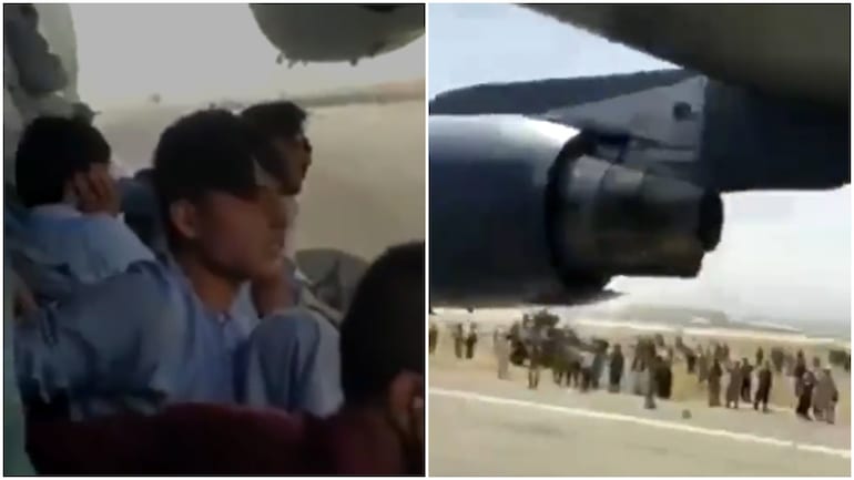 Videos show Kabul airport overwhelmed with US personnel and Afghans as Taliban take the capital. Videos uploaded from Kabul on Sunday showed chaos at the international airport as panicked people rushed to board aircraft ahead of the Talibans advance. Military suspended evacuation flights from the Afghan capital later on Monday.